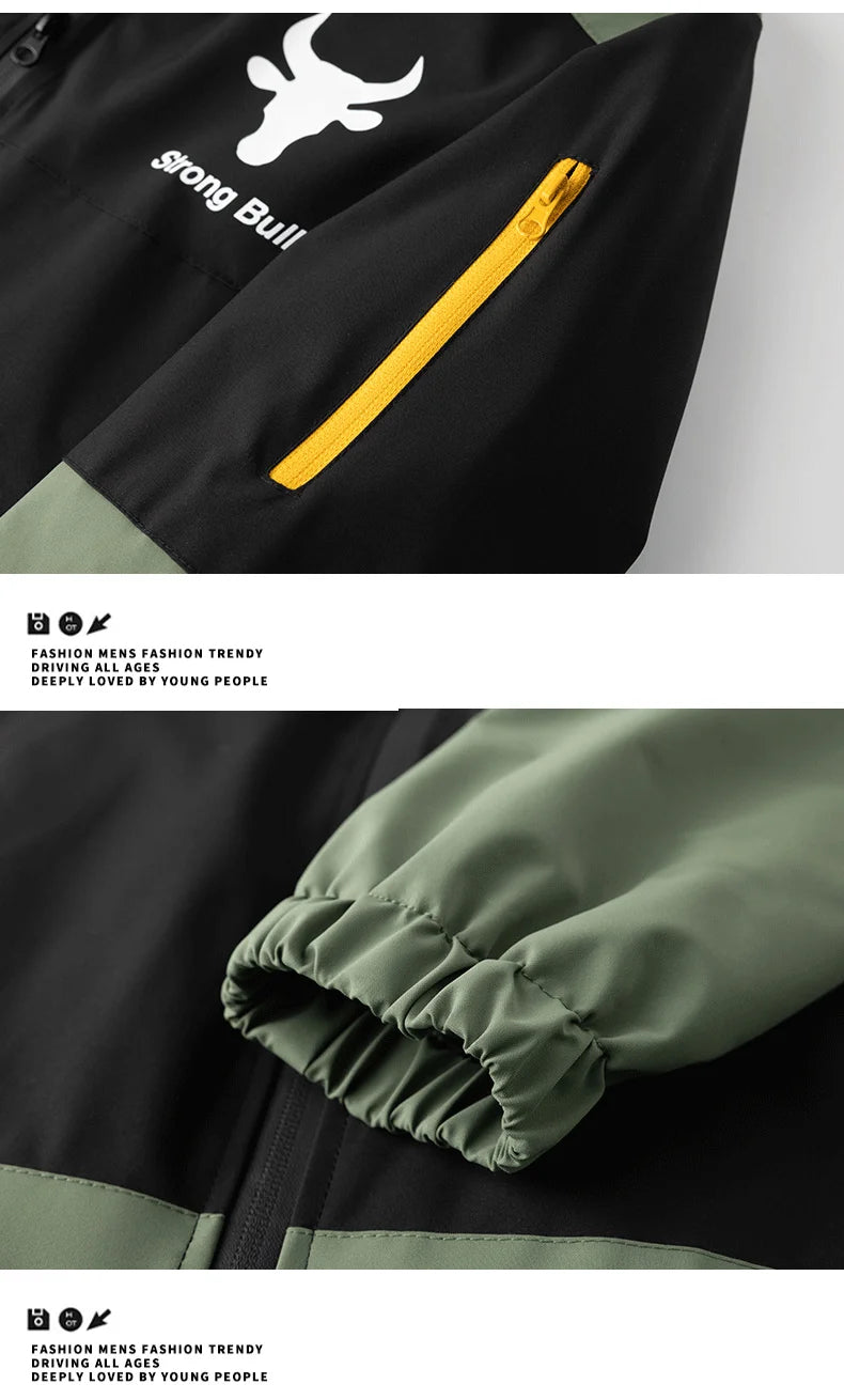 American Street Sports Jacket Men's Autumn 2025 New Casual Waterproof Loose Work Windbreaker Jackets Outdoor Hunting Hooded Coat